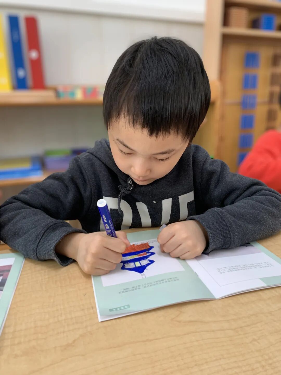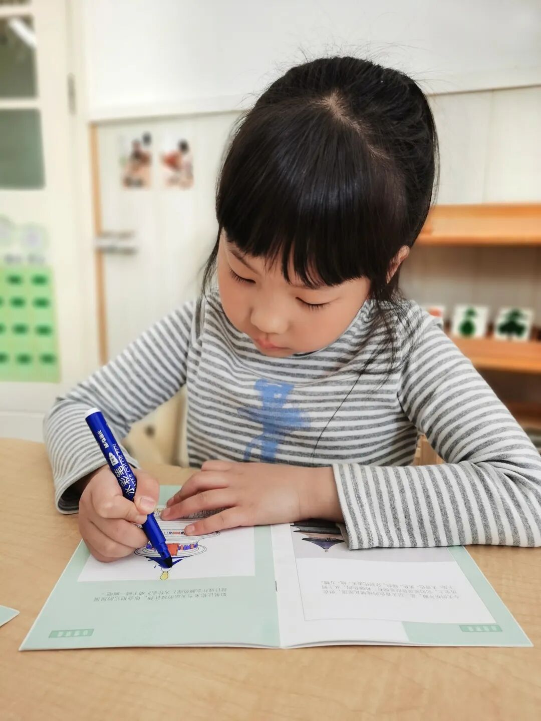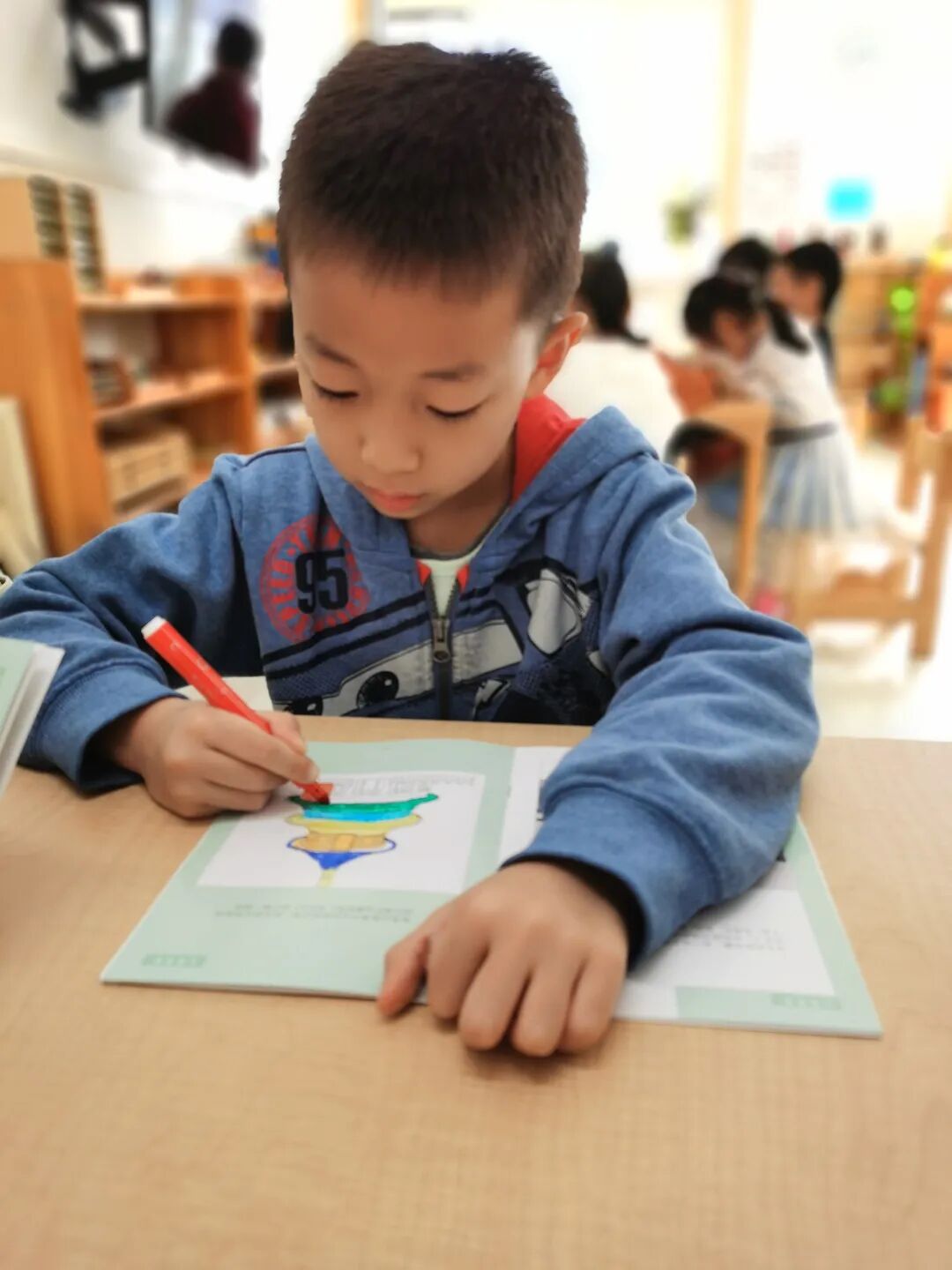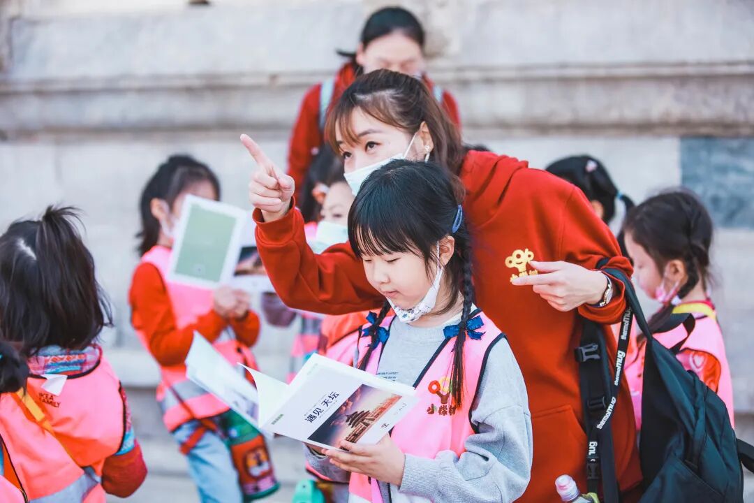 在老师精心设计的天坛图册里,孩子们对比观察祈年殿古今颜色的变化,迫不及待地在手册上设计出属于自己的祈年殿。