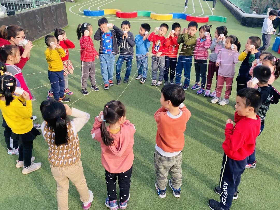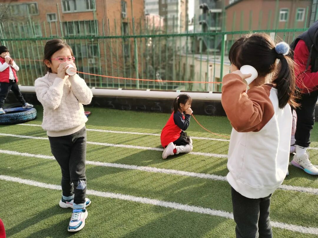 尽管周围有些许干扰,但孩子们凑在一起,聚精会神地聆听,专注地期待神秘的一刻。孩子们对声音很感兴趣的,回到幼儿园后仍不忘参观时的小任务,亲自制作了“纸杯电话”,解码声音传递的奥秘。