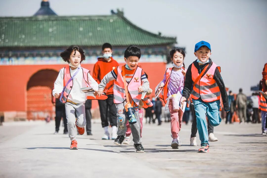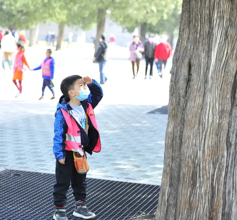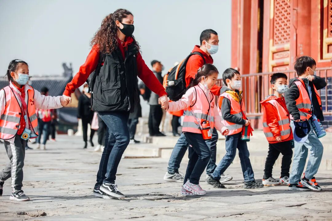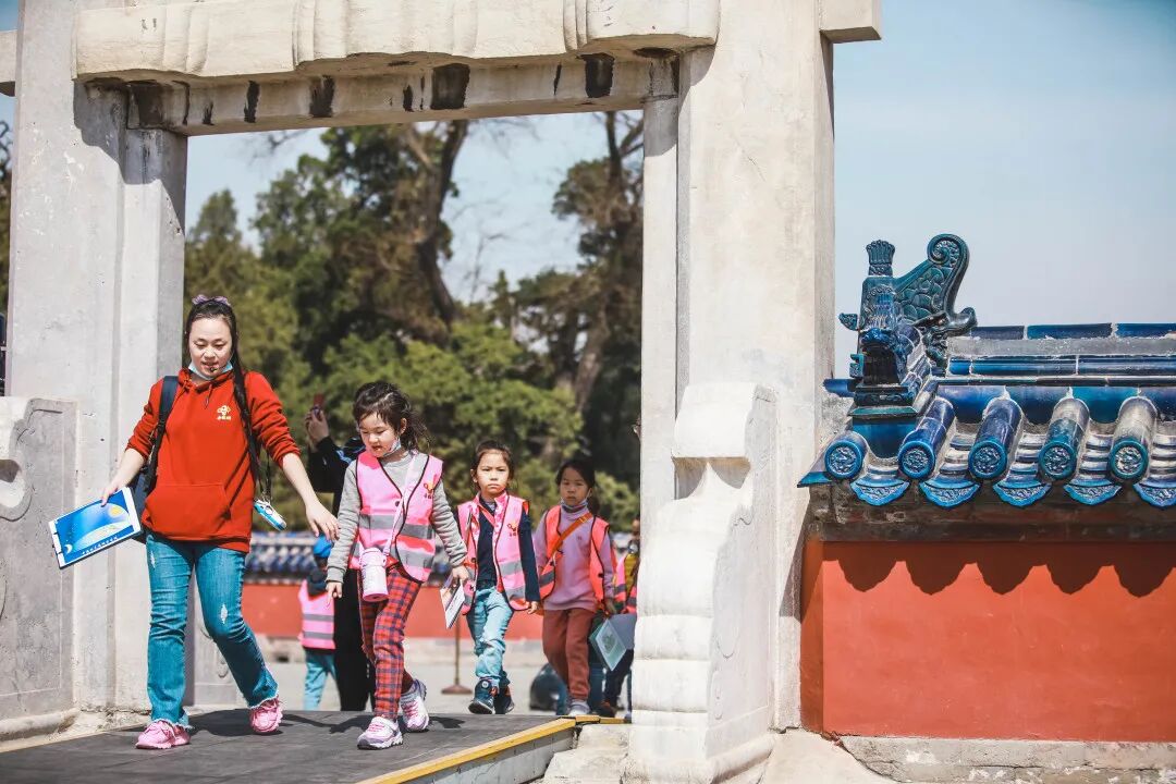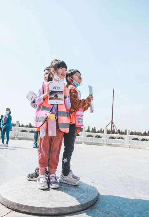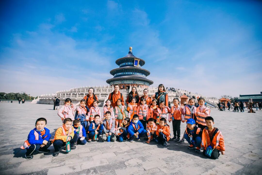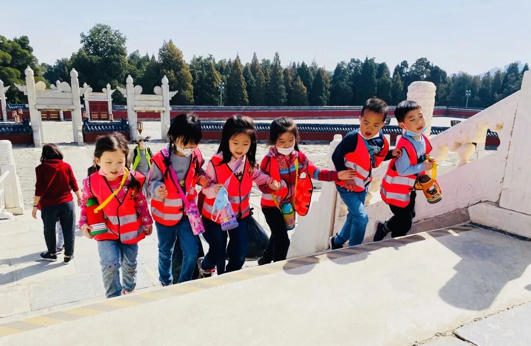 上午阳光明媚,坐在班车上远远看到天坛祈年殿的屋顶时,K班孩子们激动地欢呼起来: